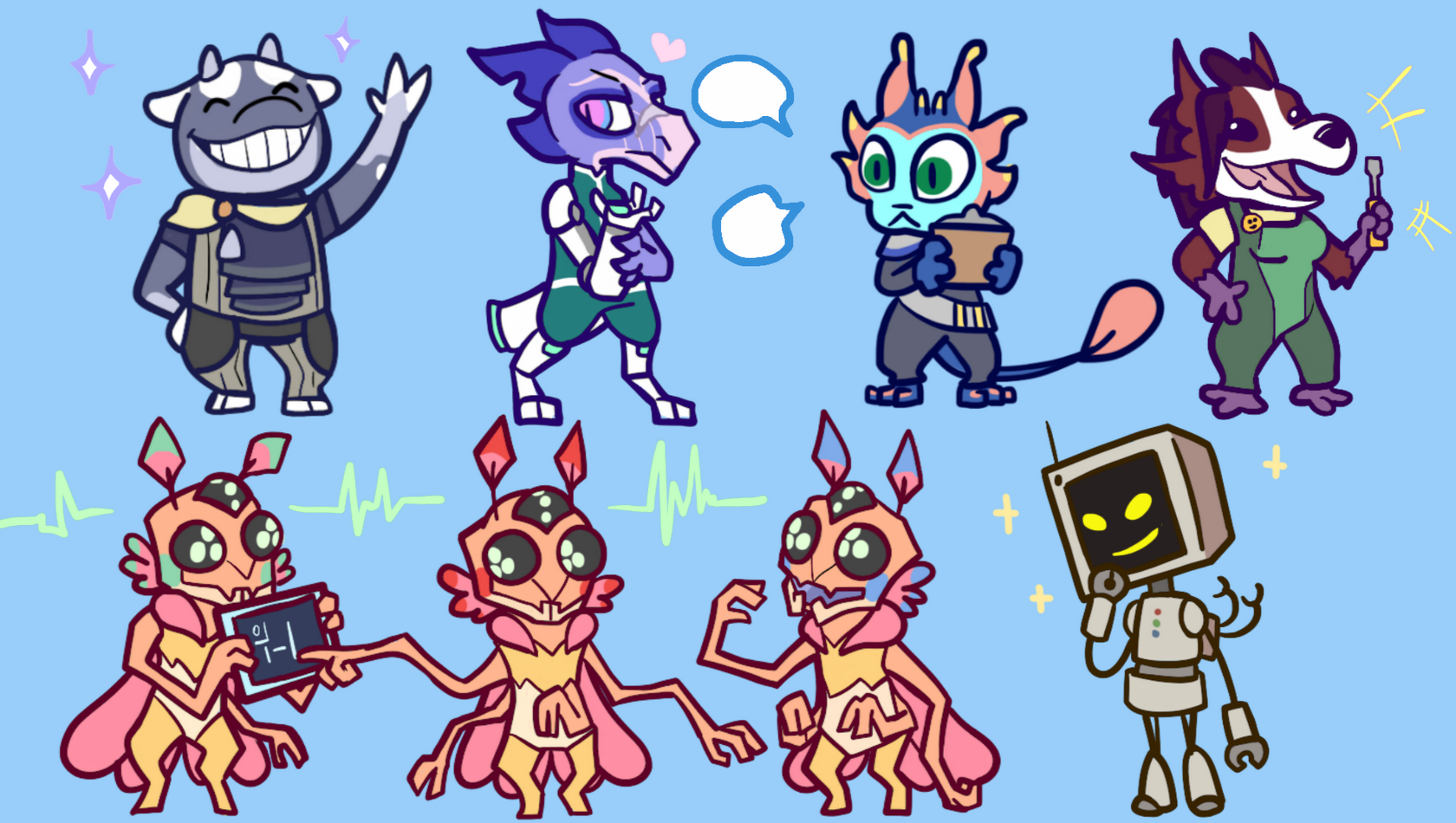 Our first full-length game will be a dating sim and visual novel, under the working title of Cygnus-13. Taking place in space, the player will find themselves in the shoes of The Drifter, who was found floating in space by the crew of the Cygnus-13 and taken on board, despite their inability to remember who they are or how they ended up out there.The player will have the option of at least four different alien suitors, as well as experience some eclectic gameplay along the way. Which alien will you fall in love with? Will you manage to recover your memories? We hope you’ll play and find out!